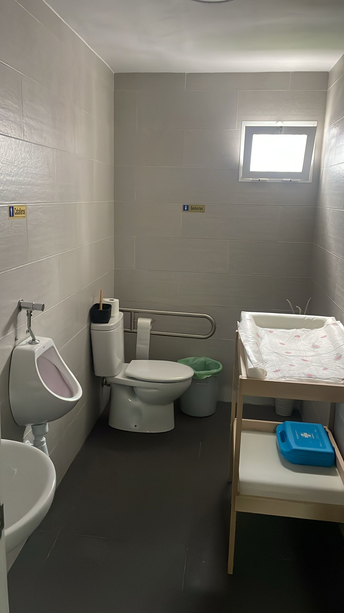 Las comodidades no se detienen aquí; disponemos de una zona office y cocina totalmente equipada, que incluye cafetera Dolce Gusto, un microondas con grill, nevera y congelador, perfecta para preparar y almacenar bebidas y snacks. Asimismo, contamos con tres baños, uno de ellos adaptado y dotado con un cambiador de bebé, asegurando que todas las necesidades sean atendidas.