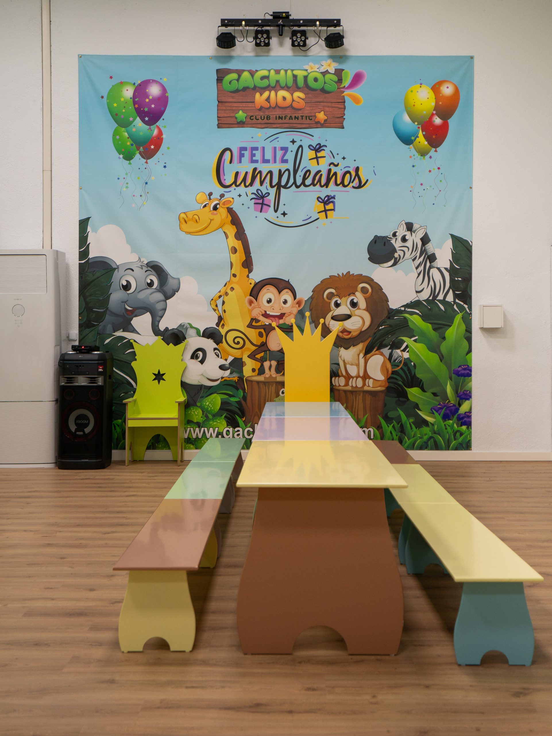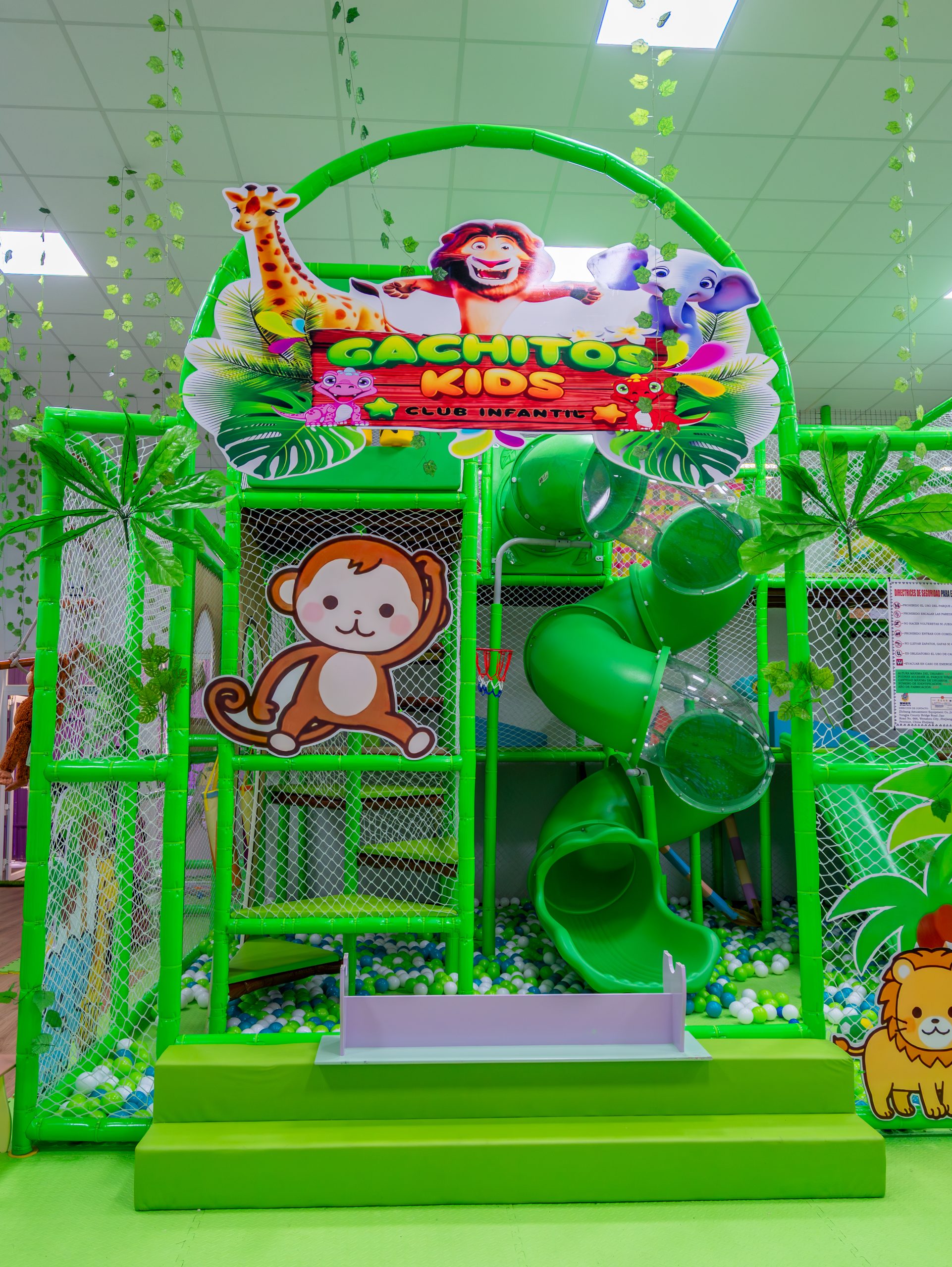 Gachitos Kids ofrece experiencias únicas, como una sala de bolas gigantes voladoras, una sala de baile y un parque aventura para 30 niños. Sin duda, la estrella de las fiestas será Kevin, la encantadora mascota, quien se asegurará de que cada celebración sea inolvidable con su mini disco interactiva.